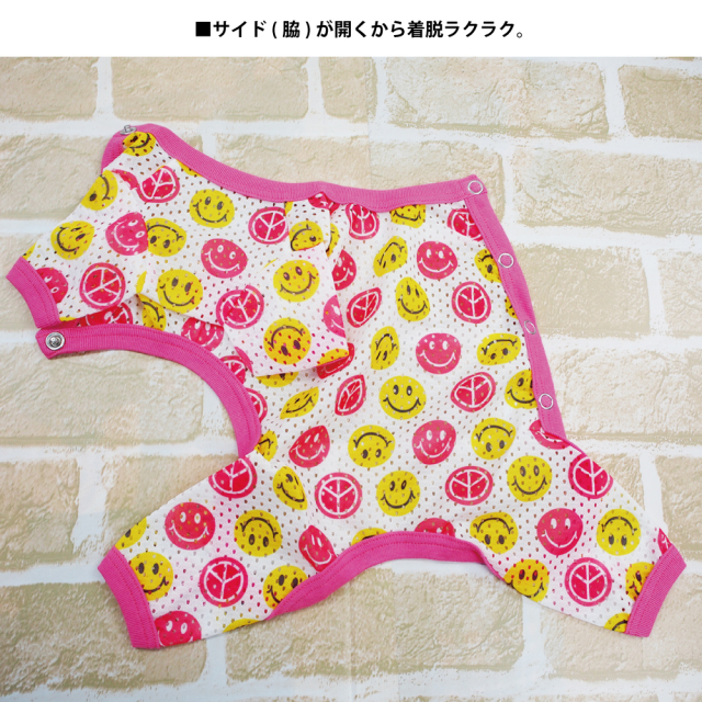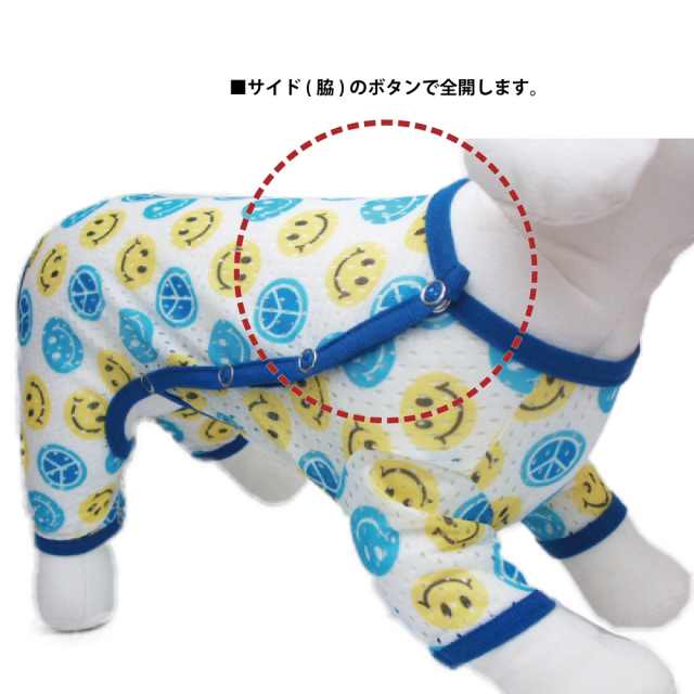 以前に背中空きのパジャマを購入して良かったので今回はサイド空きの物を購入。同一サイズを購入しましたが、サイド空きの方が大きくサイズ調整をして着せています。