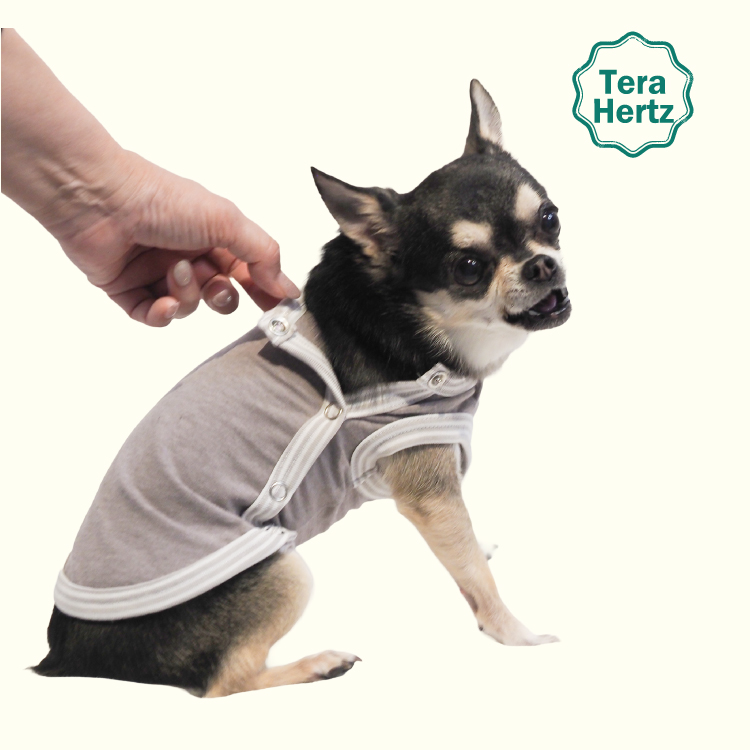 究極のパワーストーンといわれるテラヘルツ人工鉱石を配合した生地を使用しています。 ワンちゃんの体の事を考えて作った機能素材「リカバリーわん™」シリーズ。 テラヘルツは身体の弱い部分に働きかける作用があります。浸透能力に優れており、健康を促す働きをすると言われています。 お散歩が好きな子にも、年齢を重ねたシニア犬にも。 “着るケア”で、愛犬の健康をもっと長く、もっとやさしく守ります。