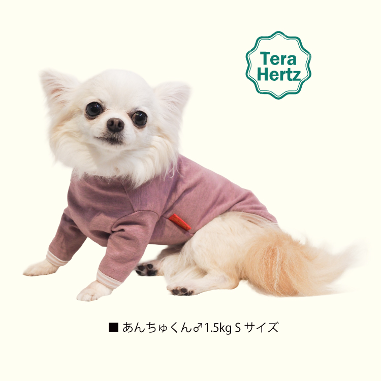 11才のジーさん。心臓弁膜症や甲状腺機能低下など老化に伴う病気と付き合いながら毎日を過ごしています昨年10月頃より毛量が極端に少なくなり先月には所々剥げ。色々試したり調べたりしていたら、テラヘルツの事を知り今回購入。お洋服ですし速攻性は考えていなかったのですが、着用し始めその日の晩に夜間の徘徊がなくぐっすり眠ってくれた事に驚き、もしかしてと思い次の晩も徘徊なし。お洋服とマットの効果なのかと思っています。ちなみにずーと夜間の徘徊なしが続いています。そして気になっていた毛量も少し増え、剥げていた所に毛が生え始めています。着用2週間で驚く変化です。思わずリピート購入しました